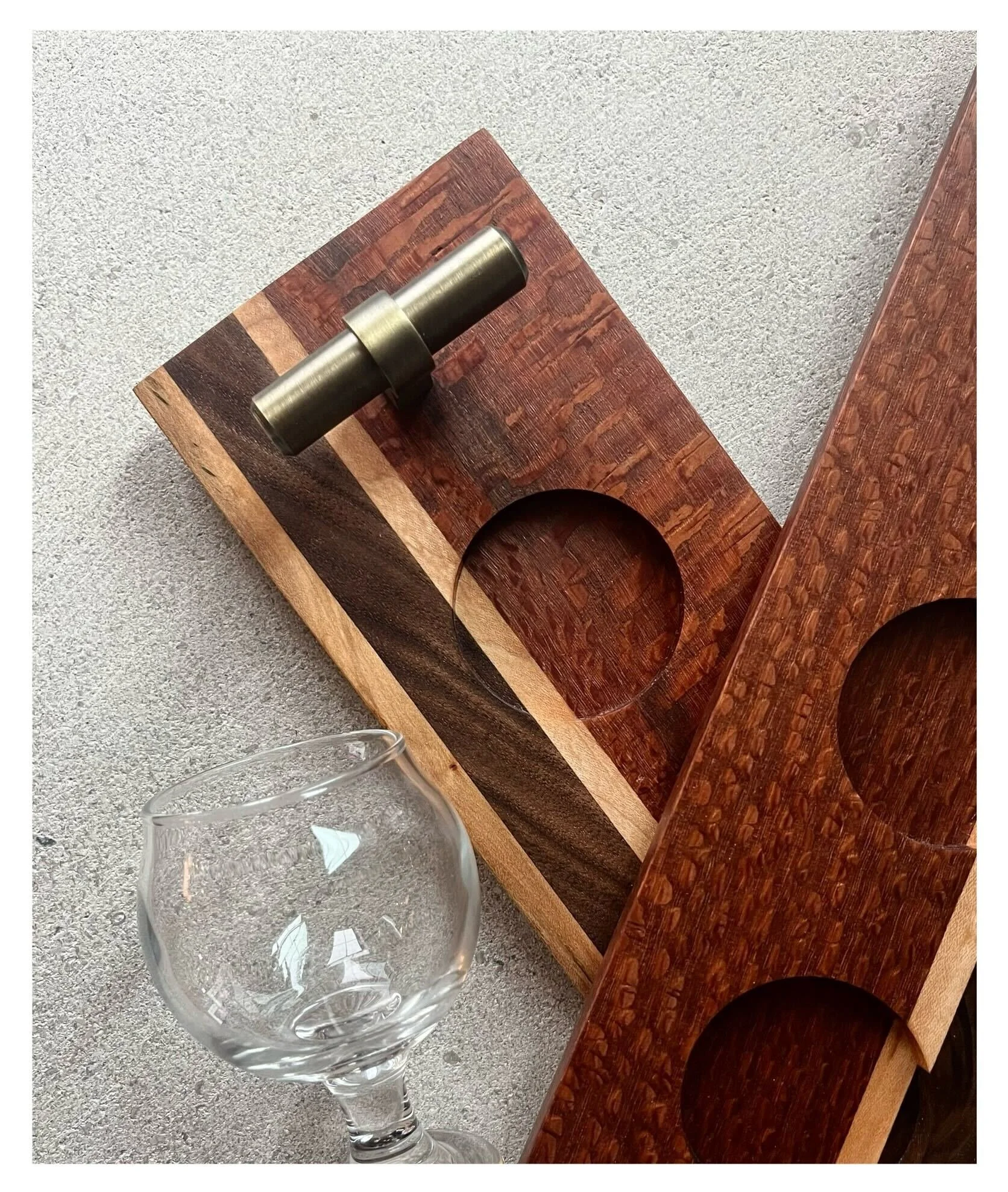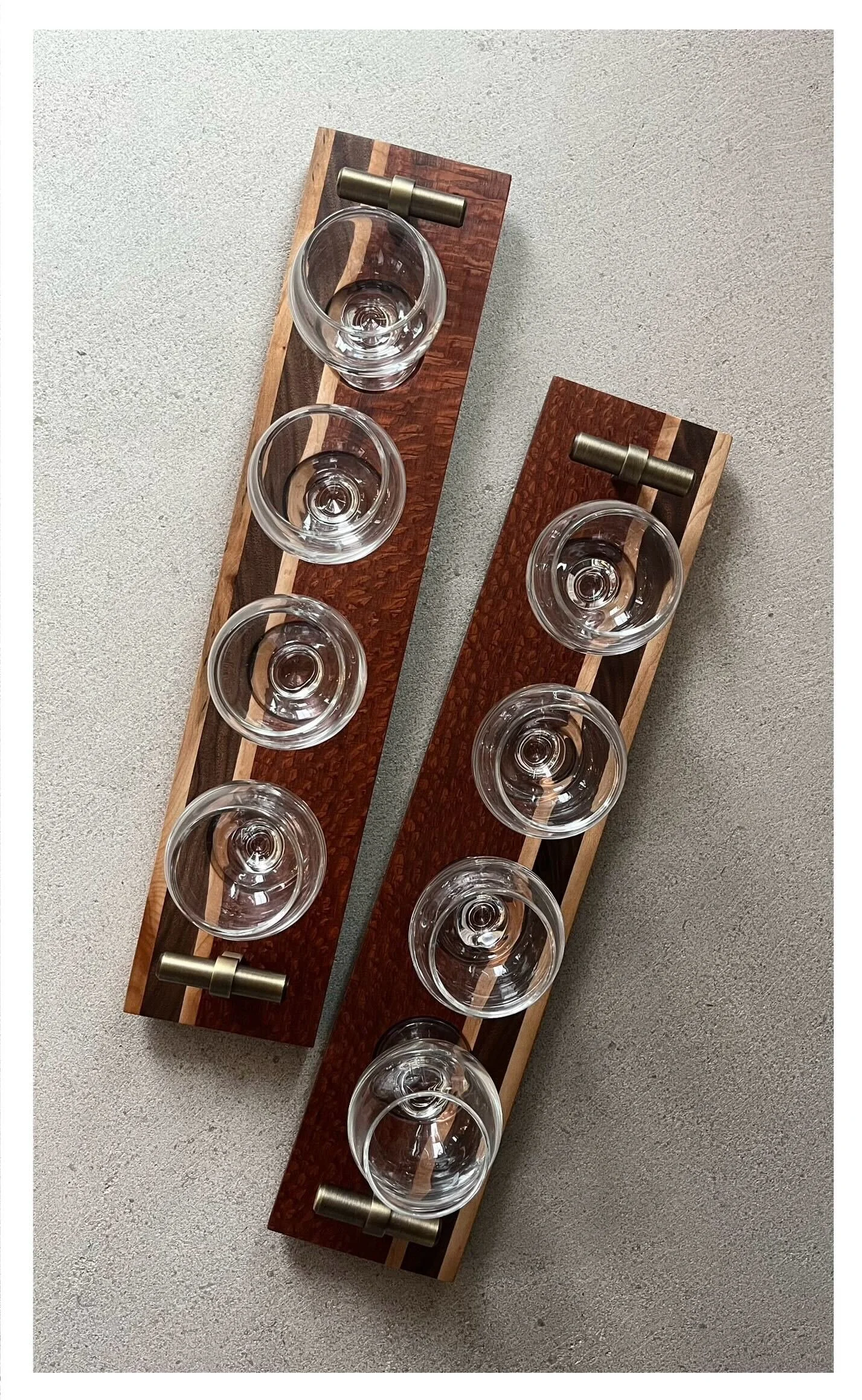 Flight Board no. 1472 boards x 4 tastersLEOPARDWOOD + MAPLE + WALNUT + ANTIQUE BRUSHED BRASS hardware