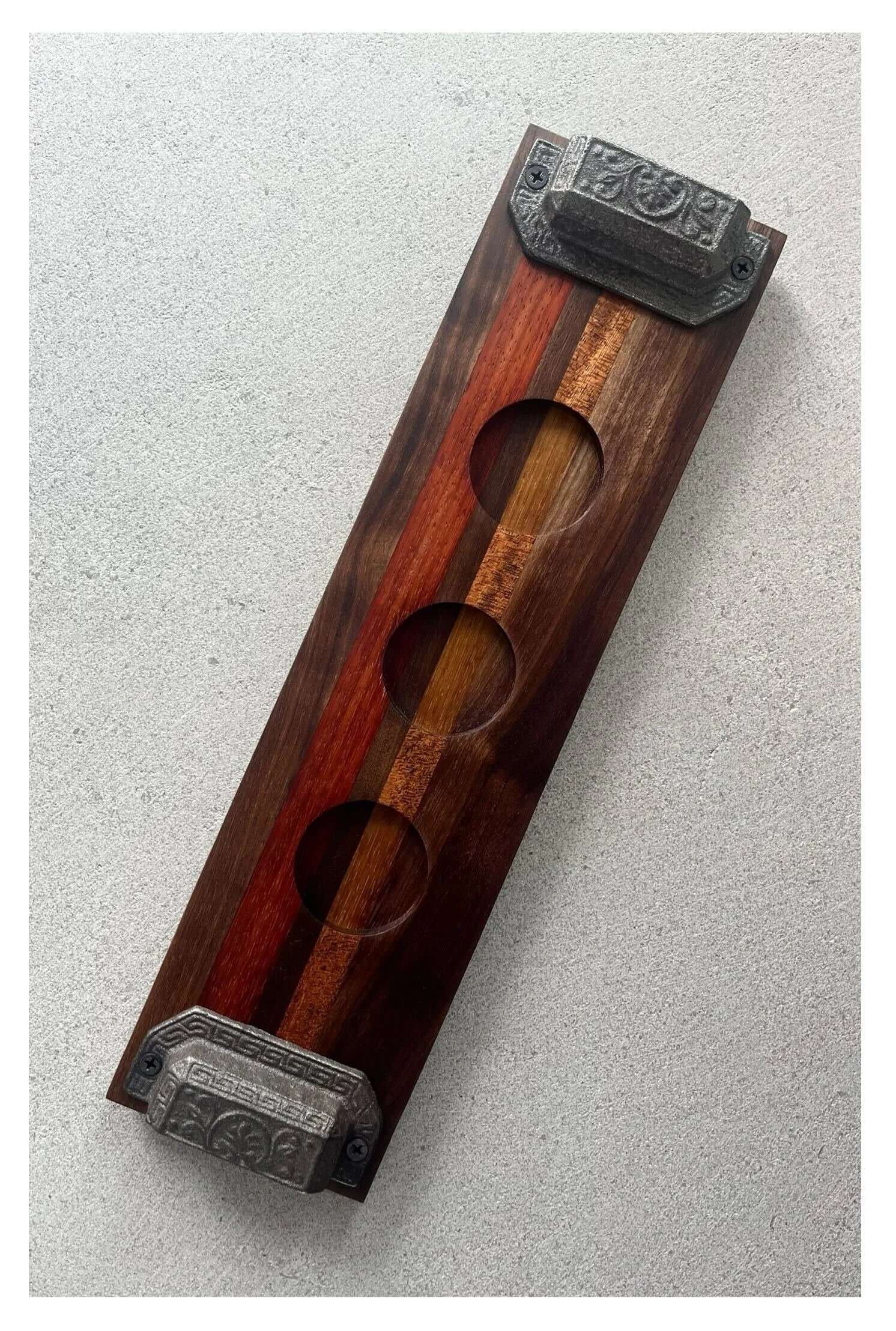 WALNUT + PADAUK + SAPELE + IROKO + ANTIQUE CAST IRON hardware